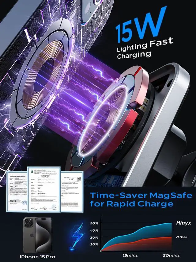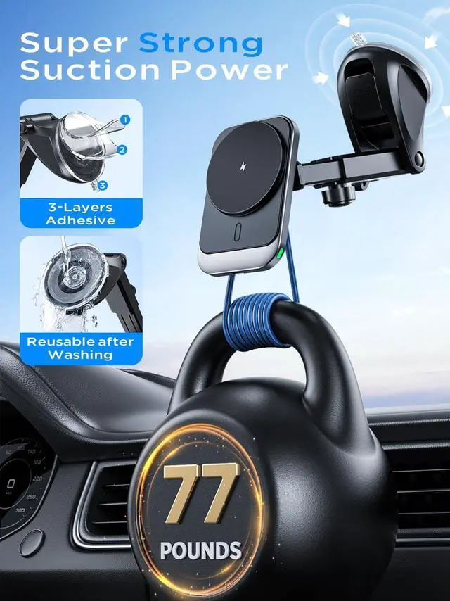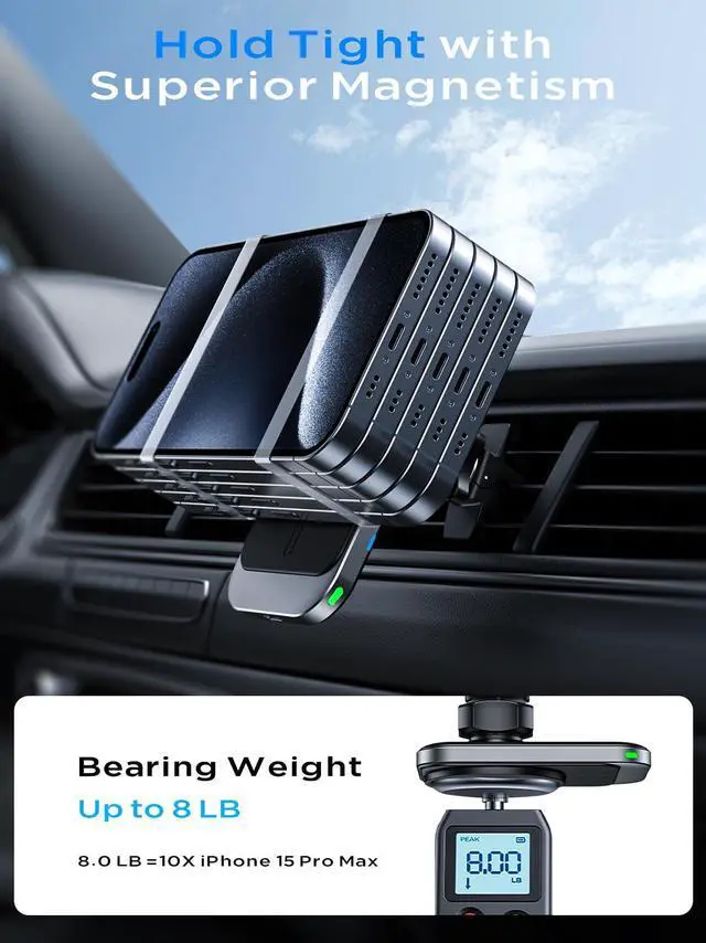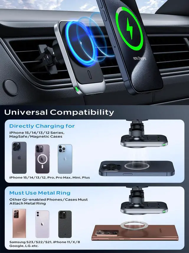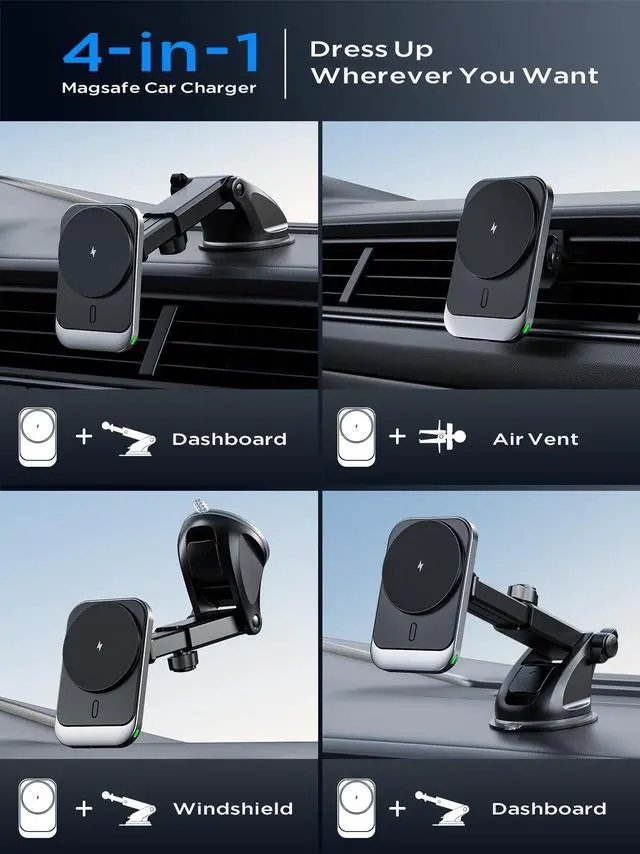 | Included Components | Magnetic car mount charger, air vent clip, nano-gel suction cups, and user manual |