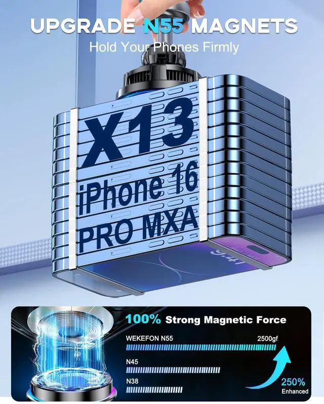 Compatibility The WEKEFON for Magsafe Car Mount Charger only for smartphones supported Magsafe, iPhone 17/16/15/14/13/12 series, Samsung Galaxy S25 Ultra/S25 +/S25 with a magnetic case. Recommended to use with official magnetic cases. Not compatible with Motorola, OnePlus and Google phones.