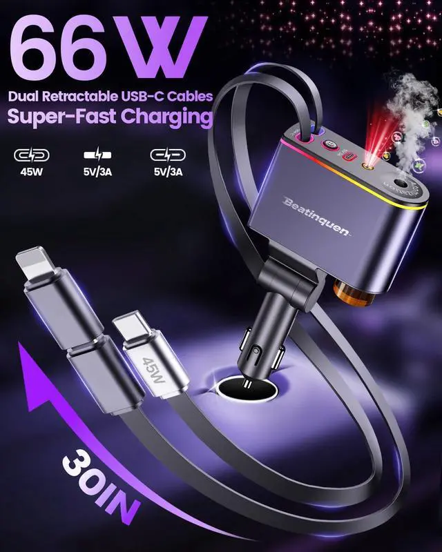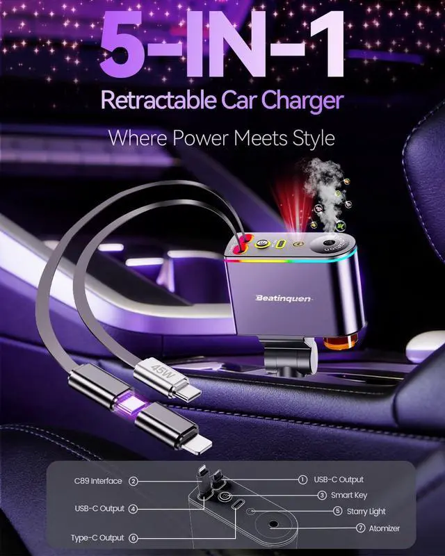 Beatinquen 5 in 1 Retractable Car Charger