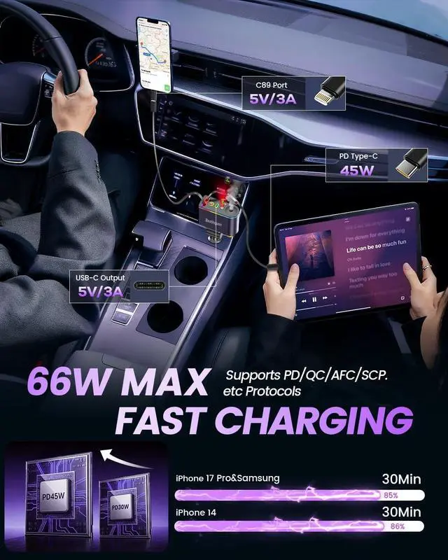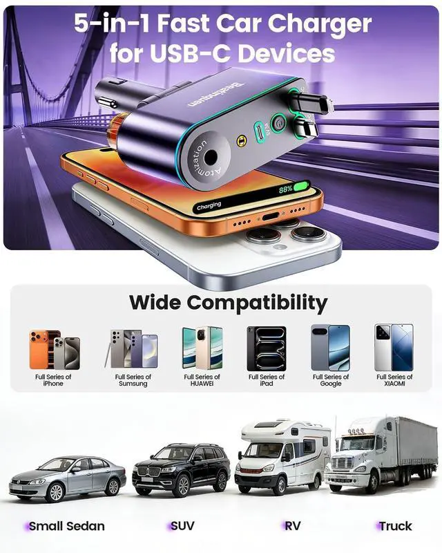 Is this USB C car charger compatible with the iPhone 17 and other recent smartphones?