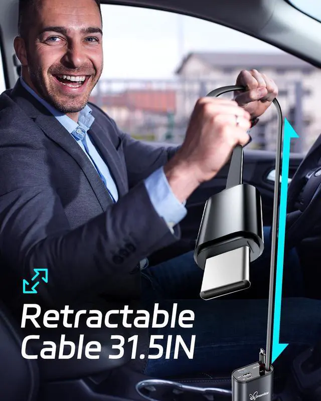 Rigorously Tested Retractable CableOur retractable car charger has Dual 31.5IN long retractable cables for easy storage and to keep your car neat and organized. No more tangled cables or cluttered compartments! Tips:This car charger is only for charging, and cannot be used for CarPlay