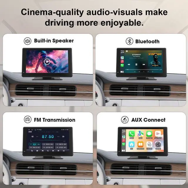 7" Portable Wireless CarPlay & Android Auto Screen for Car, HD Touchscreen, Backup Camera, Bluetooth 5.0, FM Transmitter, Plug and Play, Voice Control, Fit All Vehicles