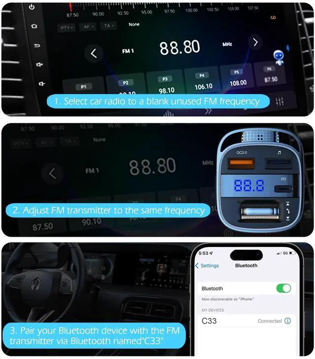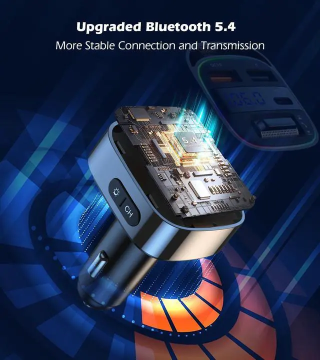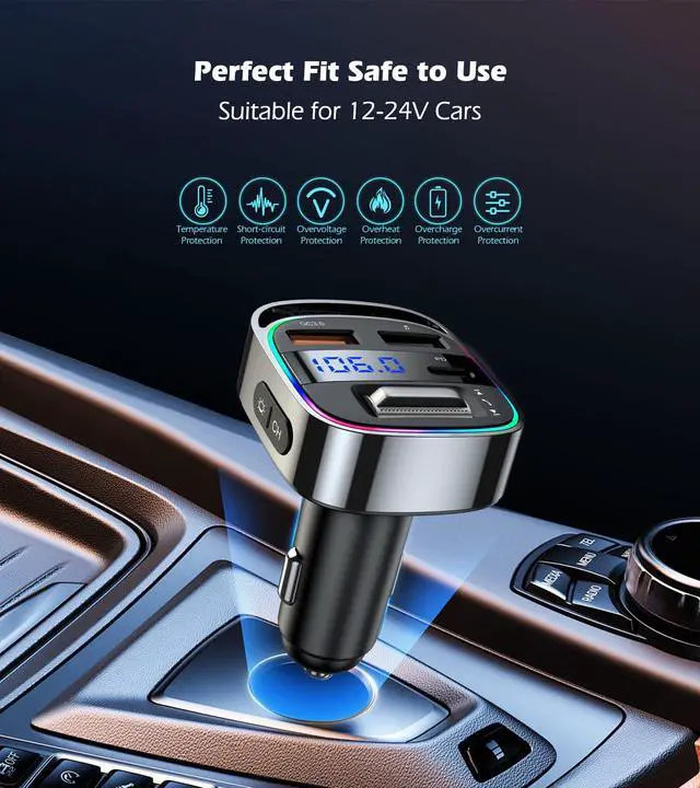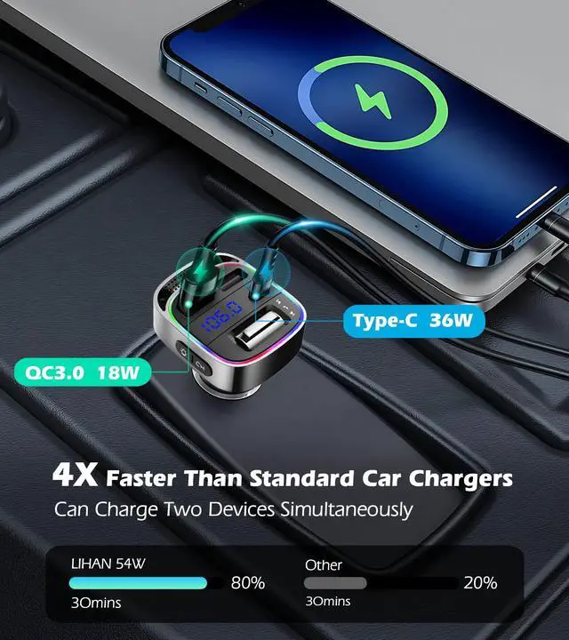Wireless FM Transmitter, Dual Fast Charging