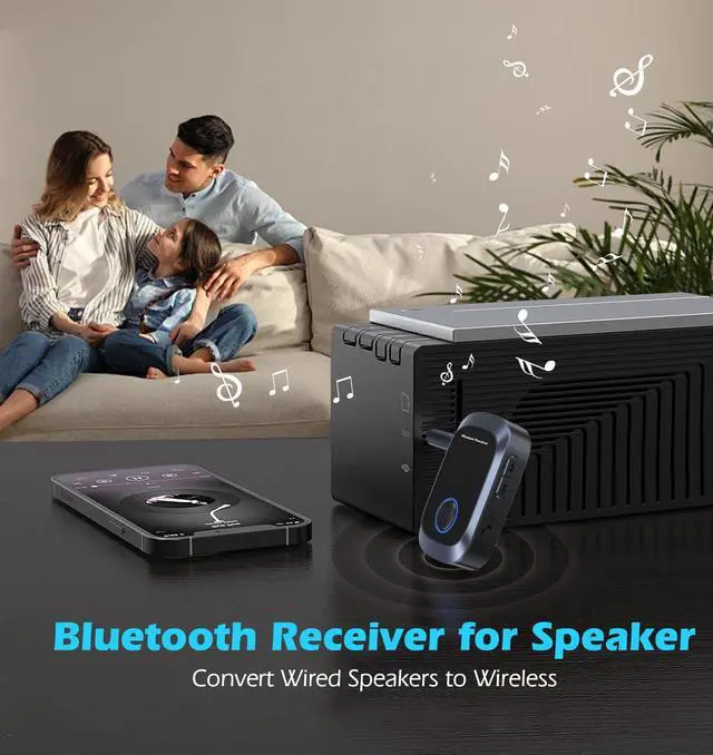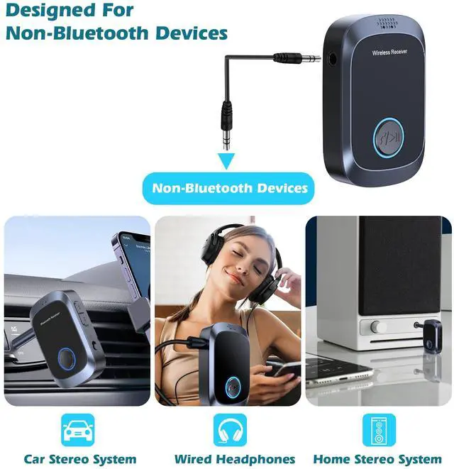 Universal Compatibility: Works as a Bluetooth adapter for cars, Bluetooth audio adapter for home stereos, and speakers via 3.5mm AUX/RCA ports.