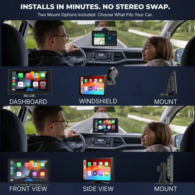 Plug and Play Installation: No stereo replacement required; portable apple carplay mounts to dashboard; wireless car play screen works with pantalla para carros con bluetooth; carplay screen car ready in minutes for any vehicle