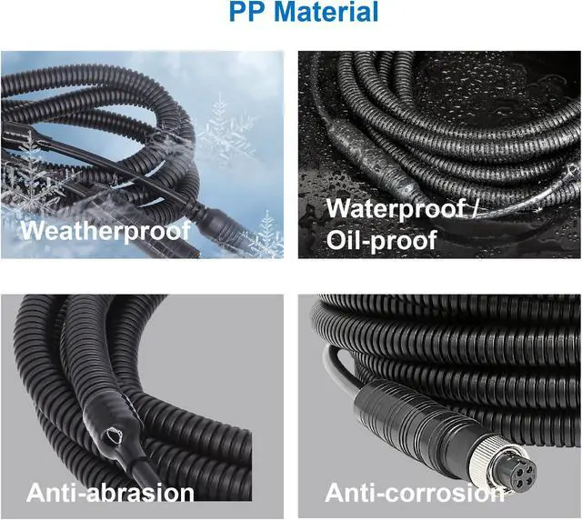 4 pin video cable with corrugation tube cover is widely used in RV, truck, tanker truck , semi-truck , trailer, horse trailer, bus, motorhome, farm harvester tractor, caravans , van, long-distance car for connecting backup camera system, surveillance CCTV system.
