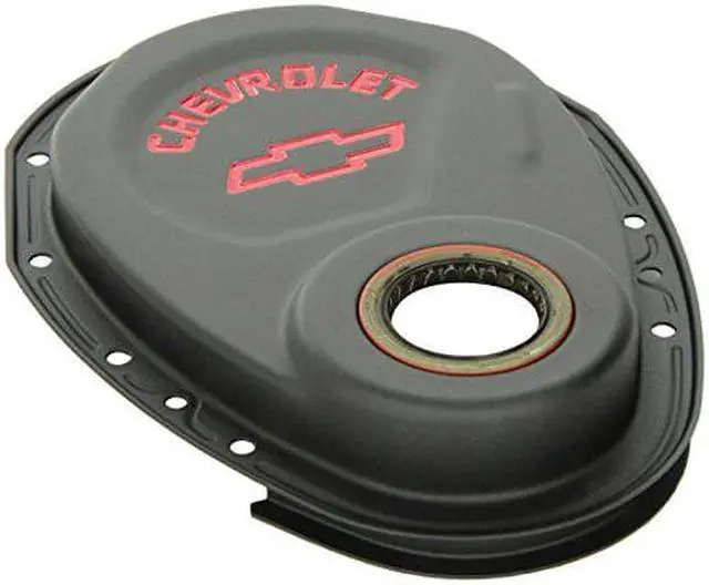Timing Cover - 1 Piece - Chevrolet / Bowtie Logo - Steel - Black Crinkle Paint - Small Block Chevy 1969-91 - Each