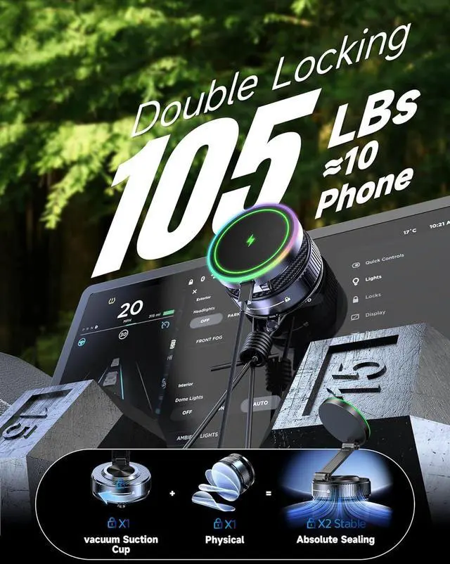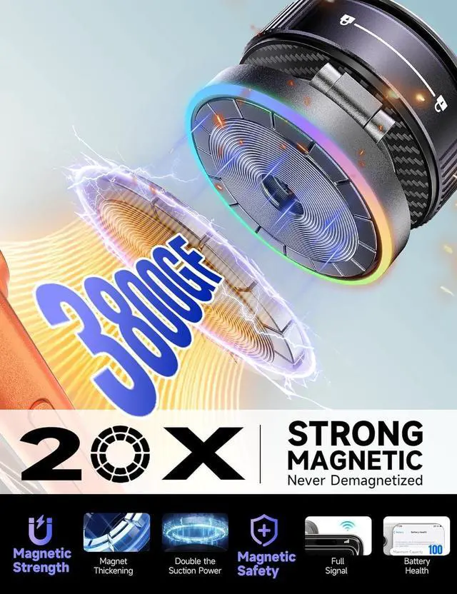 Locking Vacuum Pressure: This phone mount for car redefines the sturdiness of automotive accessories with its double locking structure: a single rotation generates powerful vacuum pressure supporting up to 105 pounds. The upgraded TPU thermal suction cup actively tightens with temperature changes enhancing vacuum adhesion and ensuring the magnetic phone holder for car remains firmly in place even in extreme environments (-40°F to 300°F)Super