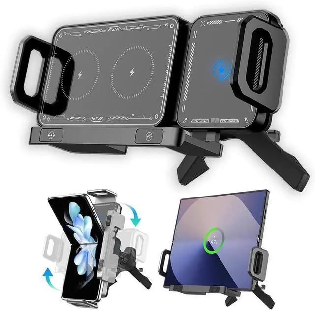 Rapid Dual-Coil Power Charge faster using 15w fast wireless car charger and dual coil car charger technology for steady power on every drive. Automatic Screen Rotation Enjoy hands-free viewing with auto rotating phone mount and smooth portrait-to-landscape switching for navigation. Smart Gravity Lock Drop in your phone and drive securely using gravity phone holder with automatic clamp operation. Dashboard Suction Stability Built with dashboard suction phone mount engineered to stay firm on bumps and sharp turns. Vent Mount Flexibility Includes vent mount car charger for quick installation across most vehicles plus one touch car holder release.