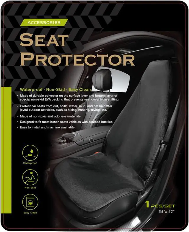 1785-09 3D UNIVERSAL BUCKET SEAT DEFENDER BLACK UNIVERSAL BUCKET SEAT DEFENDER BLACK 3D Seat Defender is perfect for those moments you have to get into your vehicle but you also don't want to ruin your seats. Maybe you've just finished at the gym, hard day of work, catching that next big wave, taking your dog to the vetthe list goes on. 3D Seat Defender quick easy installation meaning no need to plan ahead, it is perfect for those throw a towel over the seats moments where you have to choose between going home and spend hours cleaning your seats versus removing 3D Seat Defender and rinse it off next time you wash your car. Unlike that towel, 3D Seat Defender slip-resistance bottom and built-in straps will sure keep 3D Seat Defender up against you and your seats. Waterproof, Non-Skid, Easy to Clean Surface layer made from durable polyester with the special non-skid EVA backing. Protect car seats from dirt, spills, water, mud, pet hair and more.