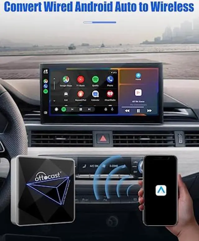 [(Convert Wired Android Auto to Wireless)] Ottocast A2-Air Pro allows users to use wireless Android Auto function on the original car display, USB plug and play. Wireless Android Auto makes it easy to get directions, or make Hands-Free calls and listen to music.
