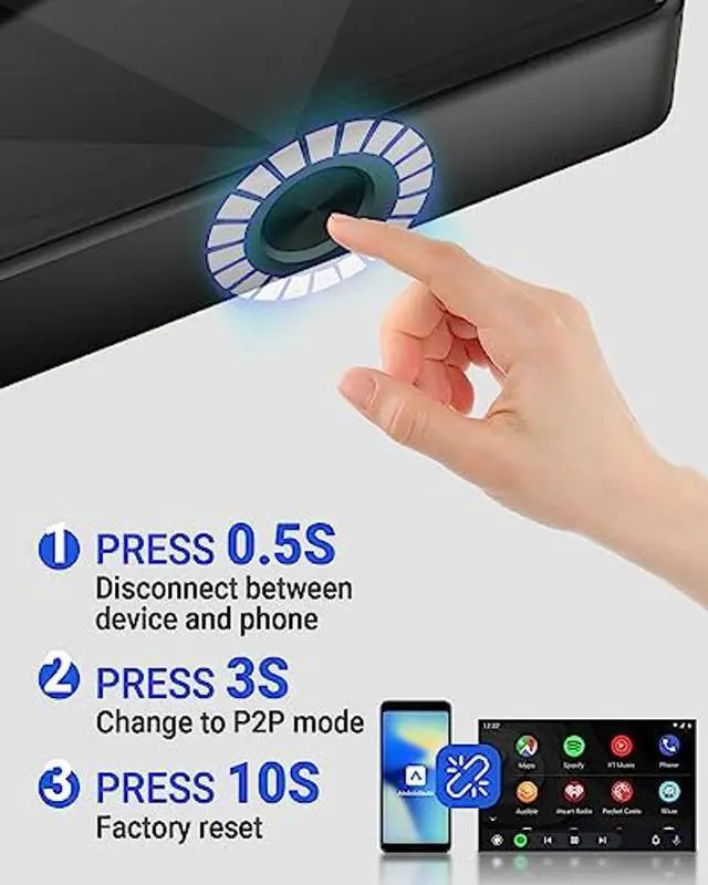 [(Easy to Use)] We keep the setup simple for fast and easy connectivity. Step 1: Plug the Android Auto wireless adapter into car USB/USB C port. Step 2: Connect your phone to the device's Bluetooth. Then enjoy Android Auto wireless!