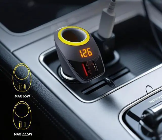 Compact Cigarette Lighter Design - Space-saving one-to-two expansion
