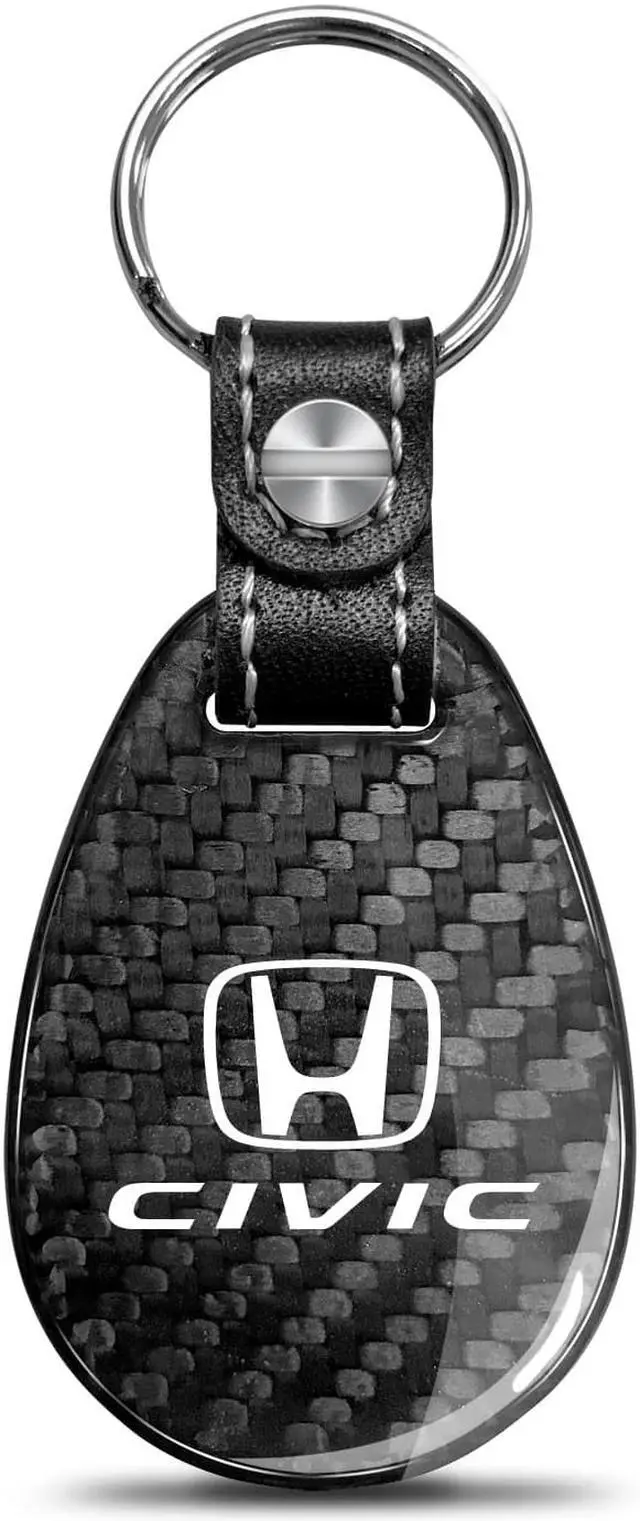 Honda Civic Real Black Carbon Fiber with Leather Strap Large Tear Drop Key Chain