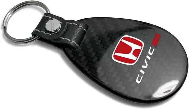 Honda Red Logo Civic Si Real Black Carbon Fiber with Leather Strap Large Tear Drop Key Chain