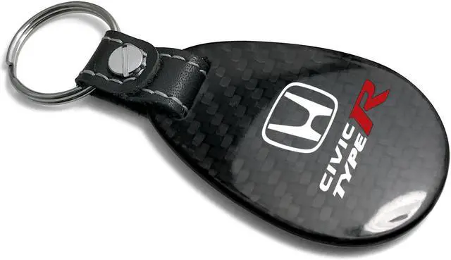 Honda Civic Type R Real Black Carbon Fiber with Leather Strap Large Tear Drop Key Chain