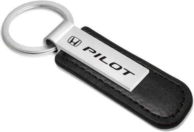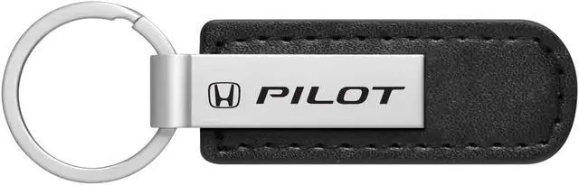 Honda Pilot Silver Metal Black PU Leather Strap Key Chain