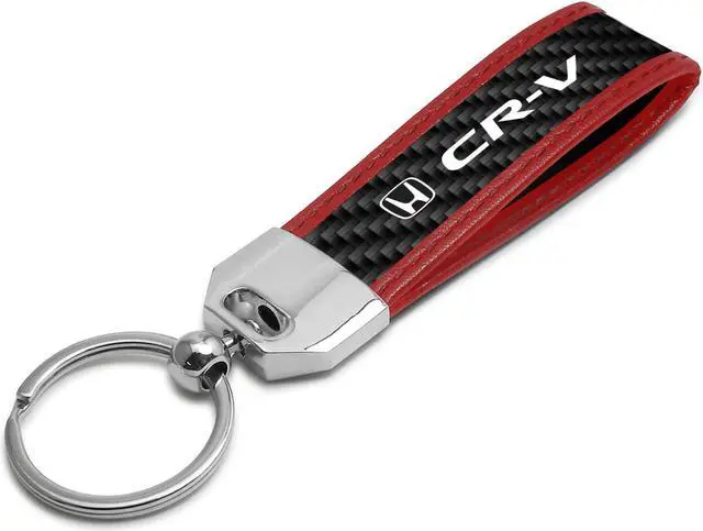 Honda CR-V Real Carbon Fiber Strap with Red Leather Stitching Edge Key Chain