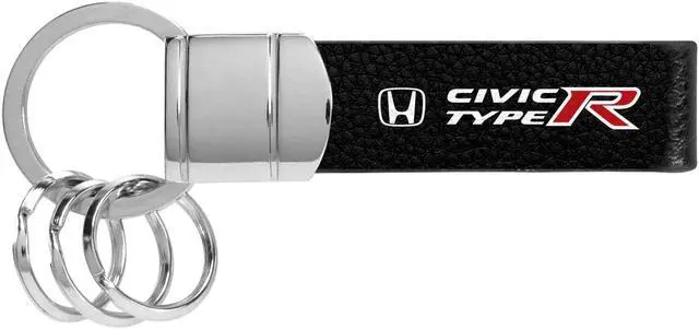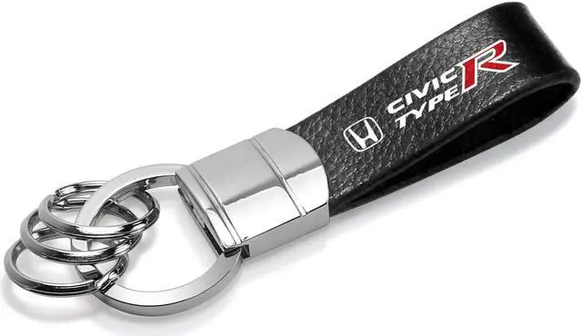 Honda Civic Type-R Black Real Leather Strap Chrome Round Hook Metal Key Chain