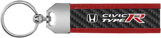 Honda Civic Type R Real Carbon Fiber Strap with Red Leather Stitching Edge Key Chain