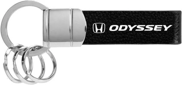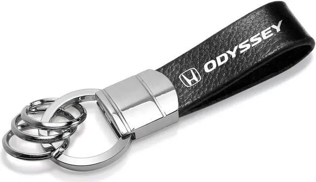 Honda Odyssey Black Real Leather Strap Chrome Round Hook Metal Key Chain