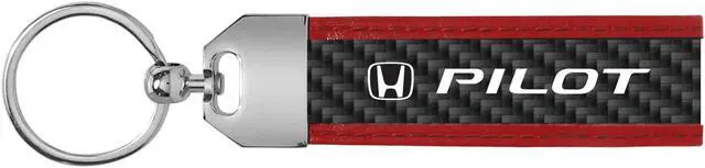 Honda Pilot Real Carbon Fiber Strap with Red Leather Stitching Edge Key Chain