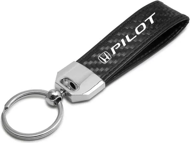 Honda Pilot Real Carbon Fiber Leather Strap Key Chain with Black stitching