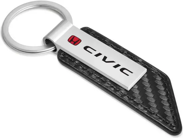 Honda Red Logo Civic Carbon Fiber Texture Black PU Leather Strap Key Chain