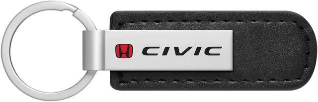 Honda in Red Civic Silver Metal Black PU Leather Strap Key Chain