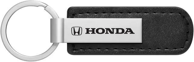 Honda Logo Silver Metal Black PU Leather Strap Key Chain