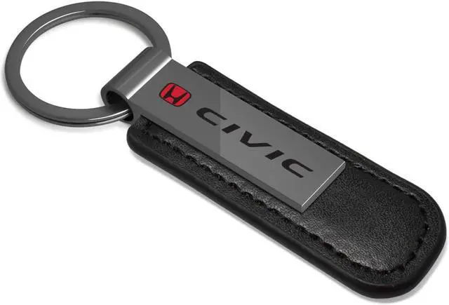Honda in Red Civic Gunmetal Black Metal Plate PU Leather Strap Key Chain