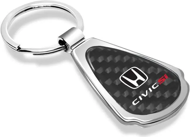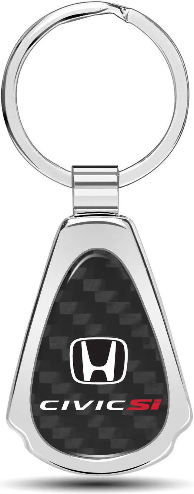 Honda Civic Si Real Black Carbon Fiber Chrome Metal Teardrop Key Chain