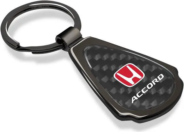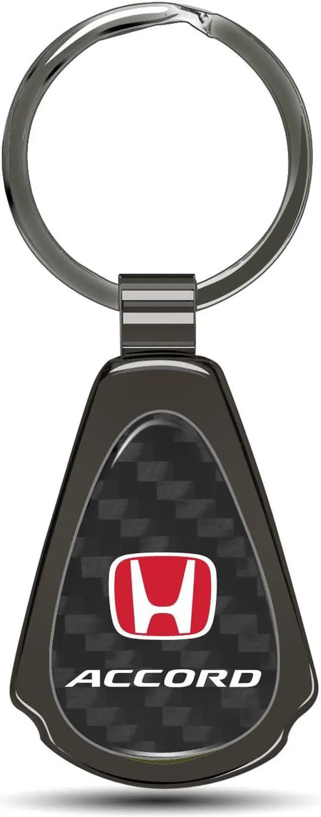 Honda Red Accord Real Black Carbon Fiber Gunmetal Black Metal Teardrop Key Chain