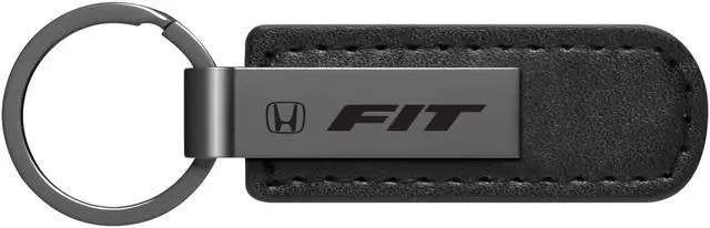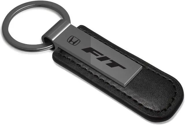 Honda Fit Gunmetal Black Metal Plate PU Leather Strap Key Chain
