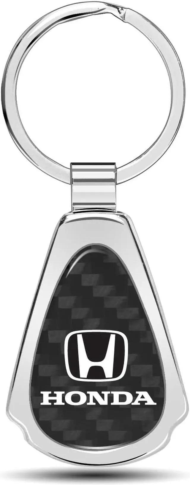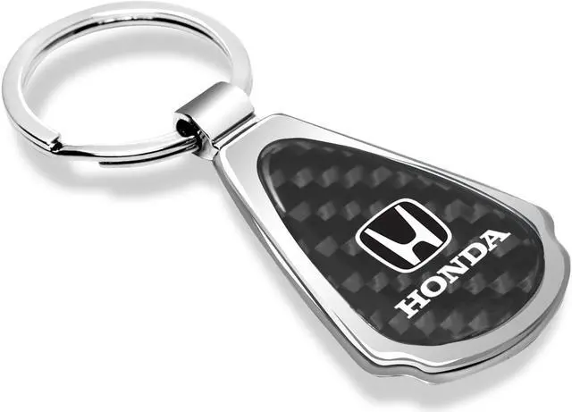 Honda Logo Real Black Carbon Fiber Chrome Metal Teardrop Key Chain