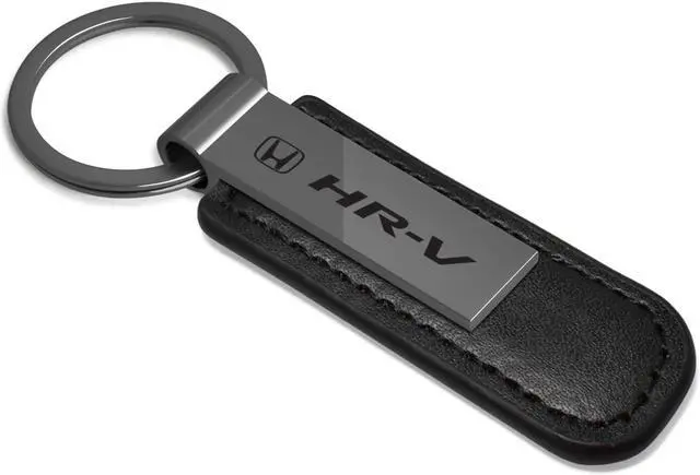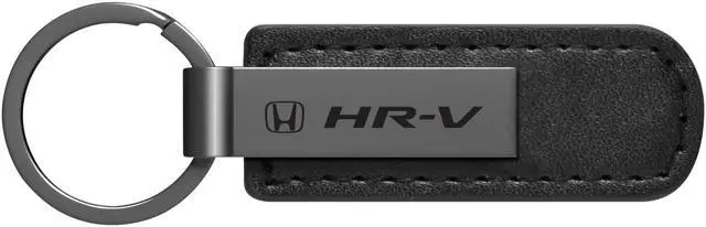 Honda HR-V Gunmetal Black Metal Plate PU Leather Strap Key Chain