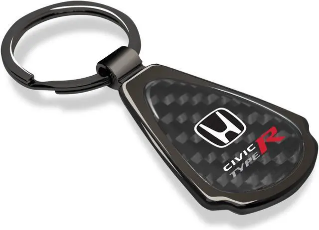 Honda Civic Type-R Real Carbon Fiber Gunmetal Black Metal Teardrop Key Chain