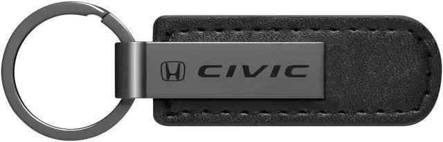 Honda Civic Gunmetal Black Metal Plate PU Leather Strap Key Chain