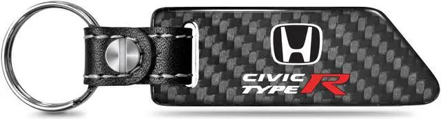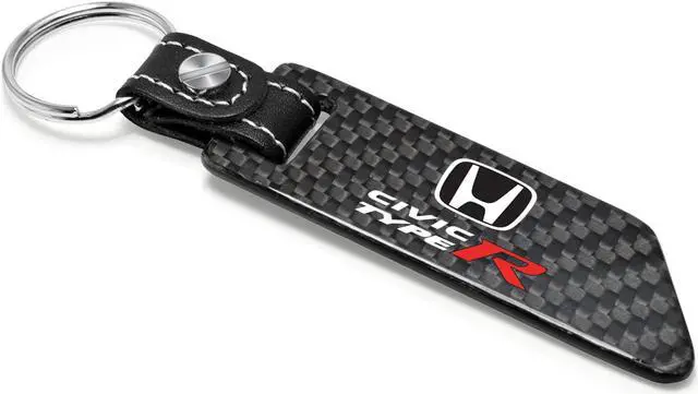 Honda Civic Type-R Real Carbon Fiber Blade Style Black Leather Strap Key Chain
