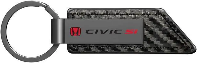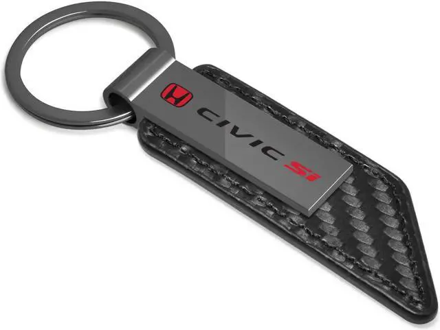 Honda Red Logo Civic Si Gunmetal Black Gray Carbon Fiber Texture Leather Key Chain