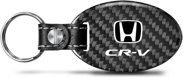 Honda CR-V Real Carbon Fiber Large Oval Shape with Black Leather Strap Key Chain