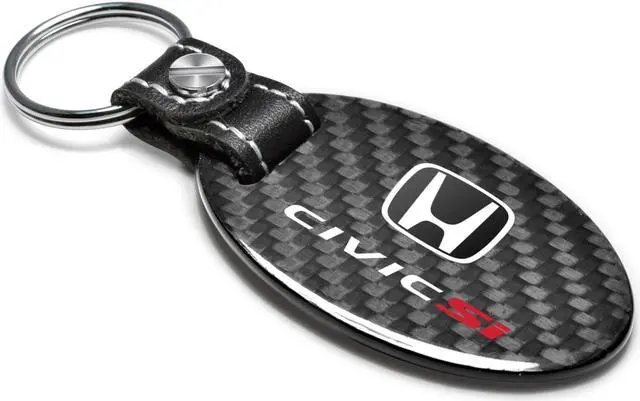 Honda Civic Si Logo Real Carbon Fiber Large Oval Shape with Black Leather Strap Key Chain