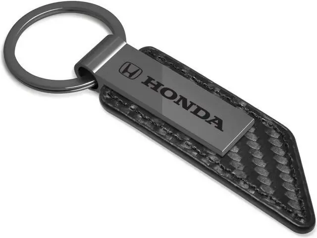 Honda Logo Gunmetal Black Gray Metal Plate Carbon Fiber Texture Leather Key Chain
