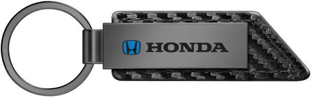 Honda Blue Logo Gunmetal Black Gray Metal Plate Carbon Fiber Texture Leather Key Chain