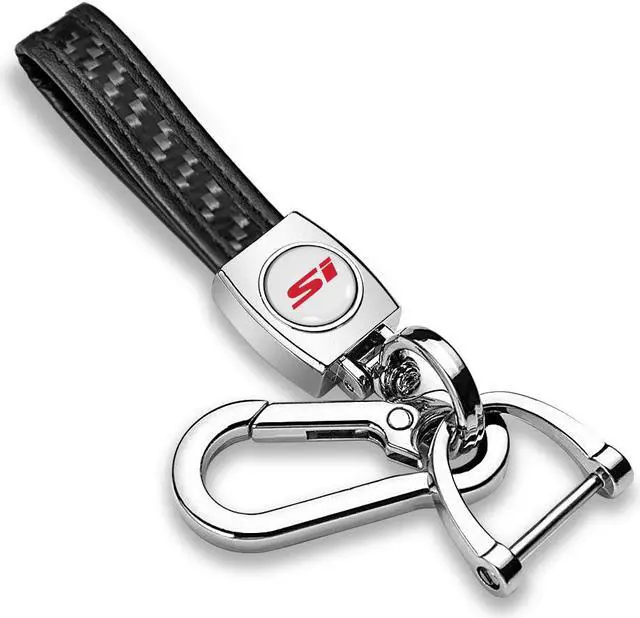 Honda Civic Si Red Logo in White Real Carbon Fiber Strap Chrome Hook Key Chain