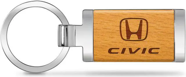 Honda Civic Laser Engraved Maple Wood Chrome Metal Trim Key Chain