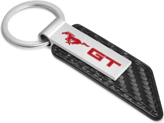Ford Mustang GT in Red Carbon Fiber Texture Black PU Leather Strap Key Chain