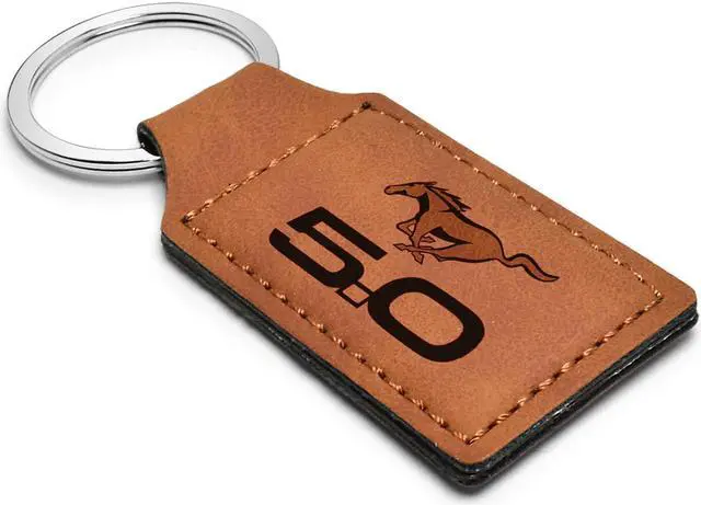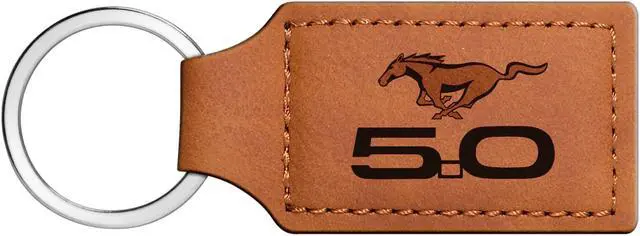 Ford Mustang GT 5.0 Rectangular Brown Leather Key Chain