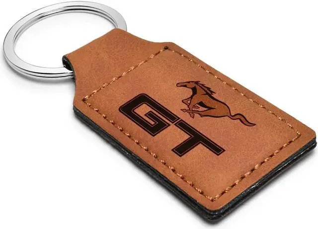 Ford Mustang GT Rectangular Brown Leather Key Chain