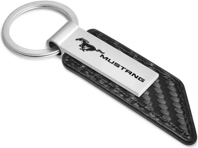 Ford Mustang Carbon Fiber Texture Black PU Leather Strap Key Chain